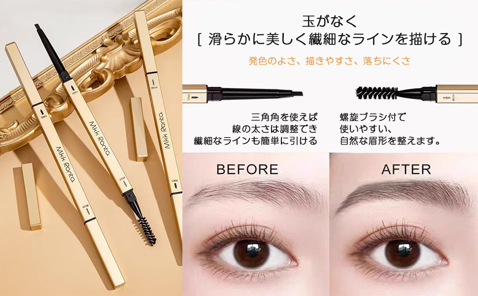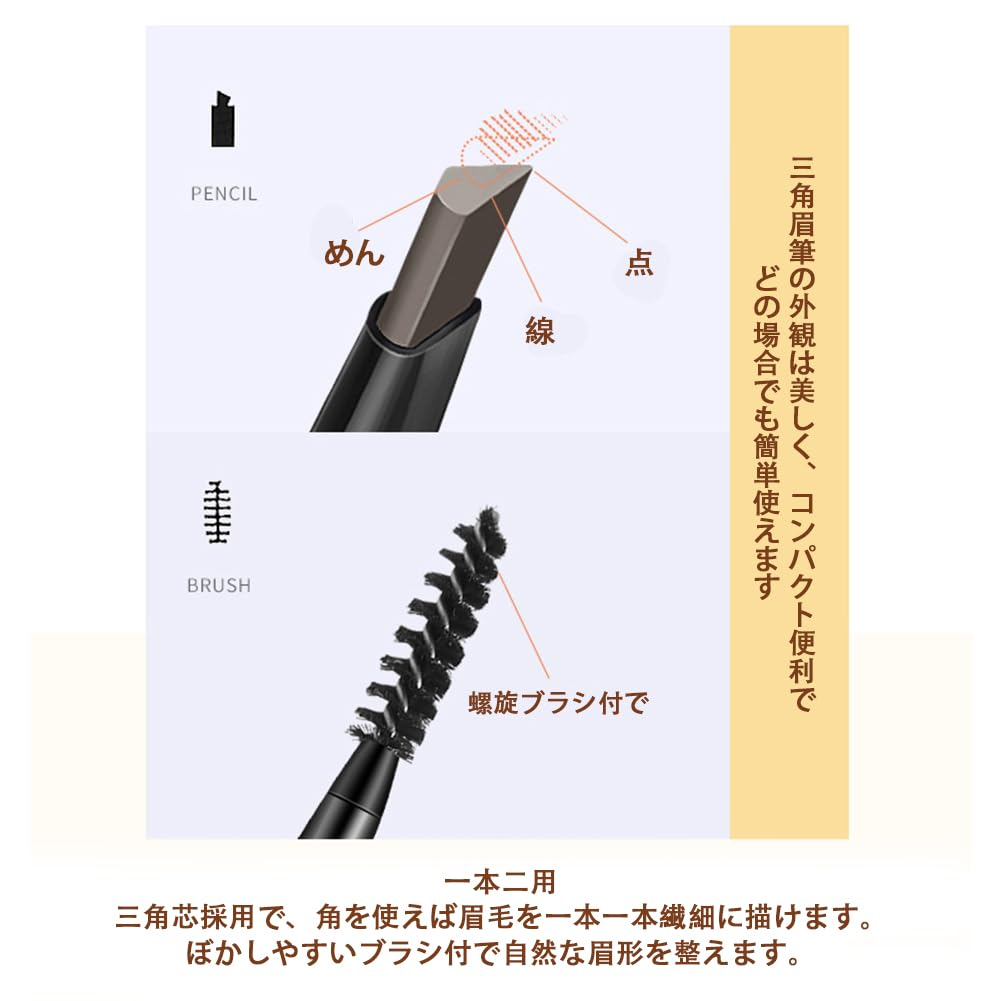 • 【調整性が高い】三角眉筆の芯は従来の眉筆より柔らかく、個人の好みに応じて修正や形状調整ができ、より柔軟性が高いです。