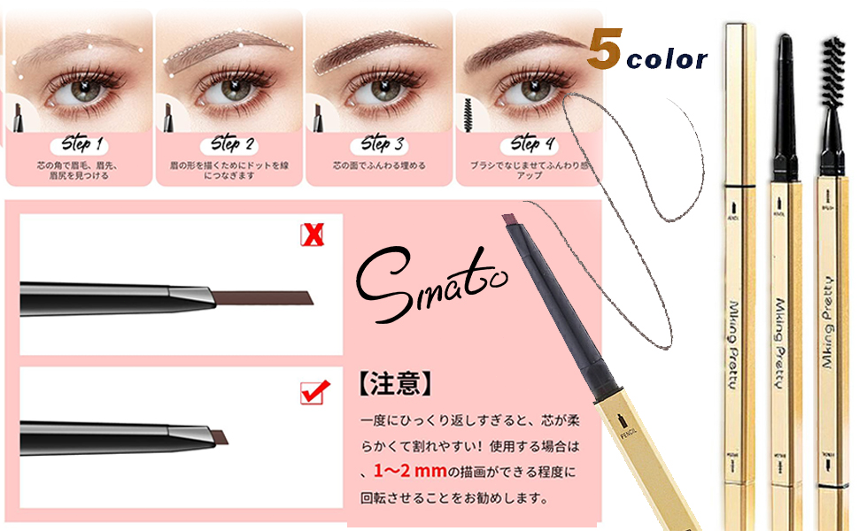 Smato 眉毛 ペンシル 三角芯採用 超細芯 アイブロウペンシル 落ちない 一本二用 形状の調整簡単 眉マスカラ (5色 5本セット)