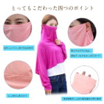 - 通気性がいい:顔面下半分をすっぽり覆って日焼け防止に!軽くて付け心地も良いです。