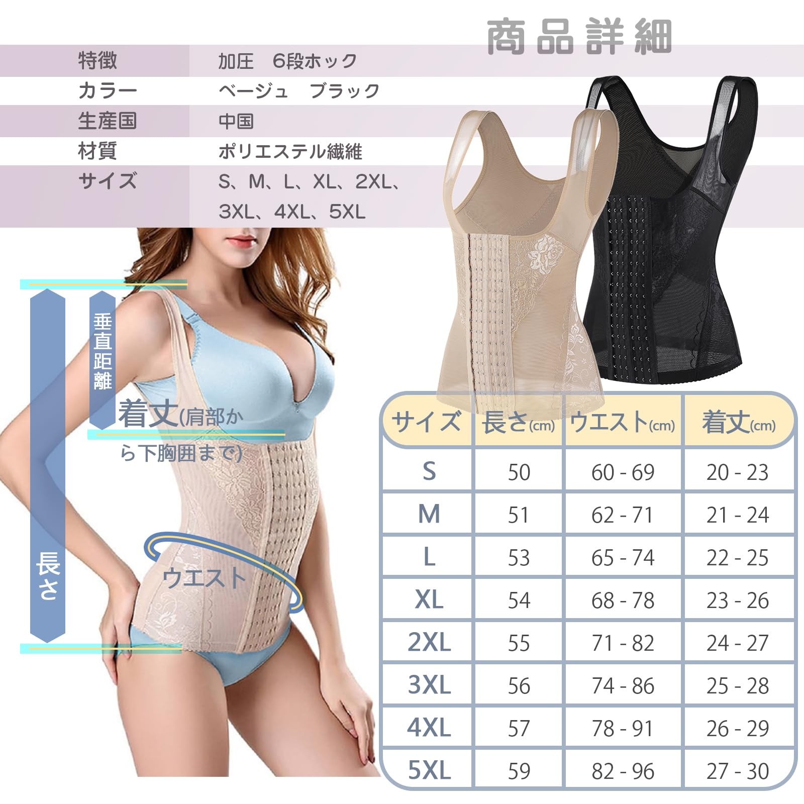 [Smato] タンクトップ型コルセット ロングタイプ ウエストニッパー ボーン内蔵 二重加圧 シェイプアップベルト ウエストしめる お腹引き締め くびれ 通気 伸縮 大きいサイズ 補正下着 レディース 女性
