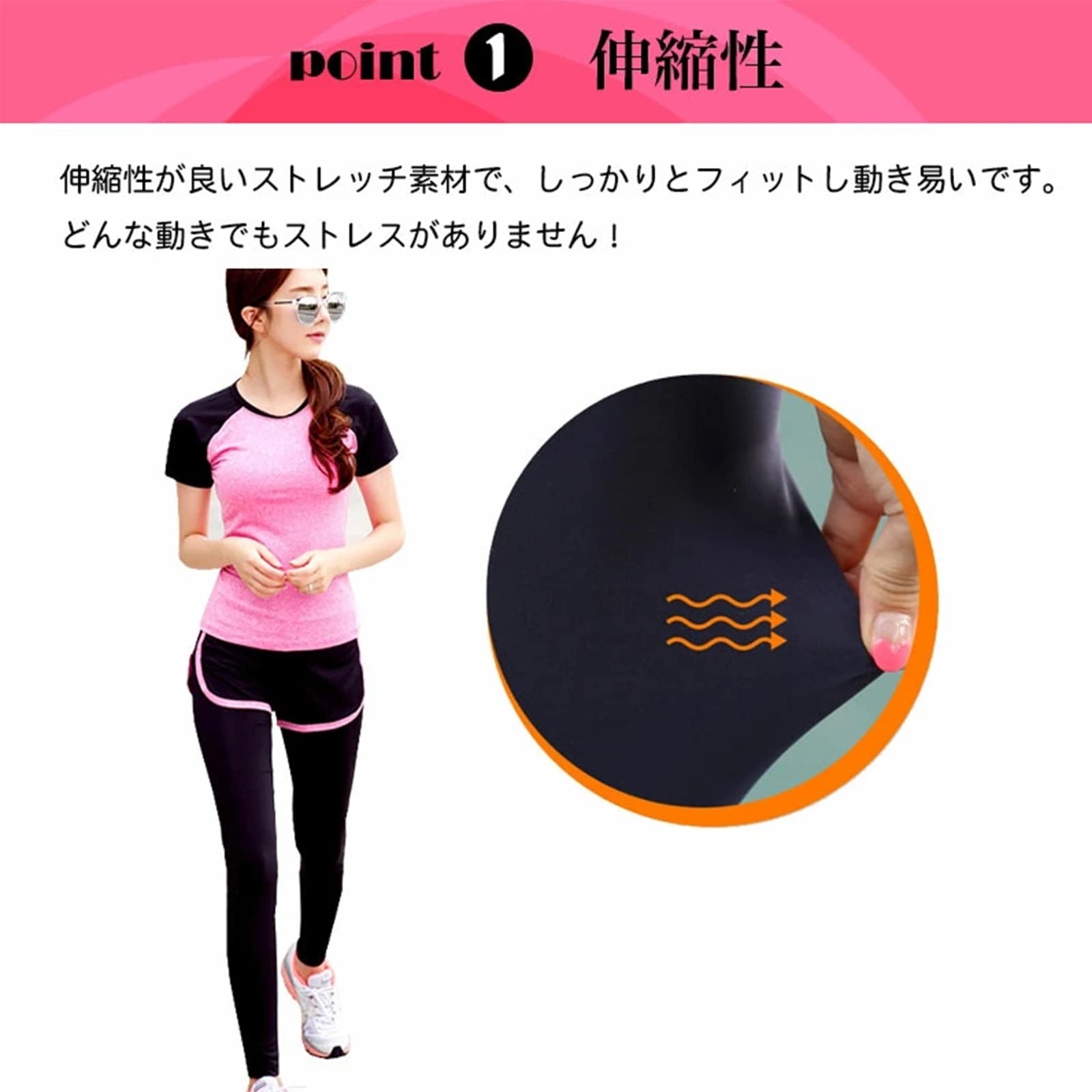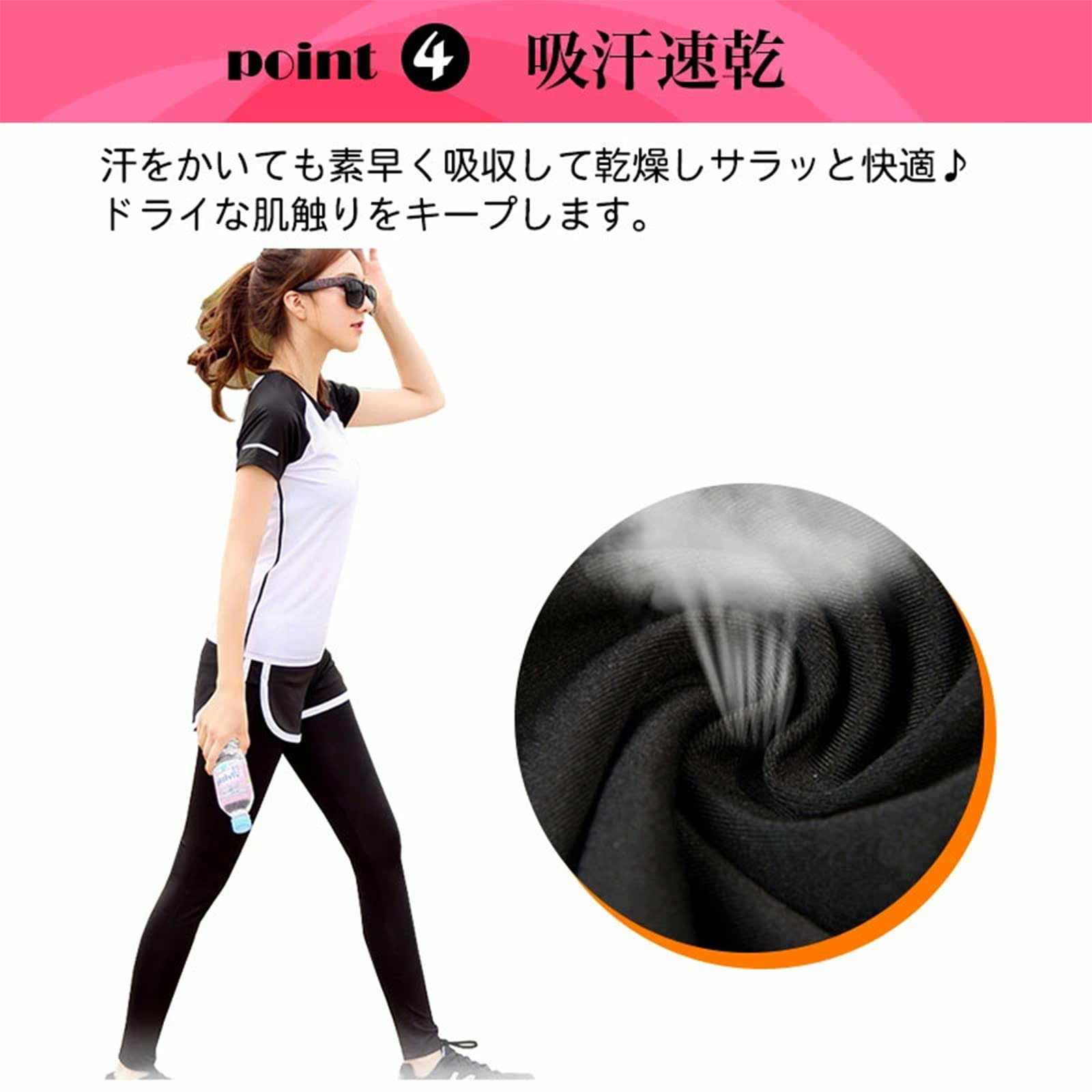 • 適用場面:ランニング、ウォーキング、ダイエット、筋力トレーニング、ホットヨガ、ダンス、ジム、テニス、ヨガ、いろいろな運動に適当!春から冬までロングシーズンお使いいただける、日焼け対策にもばっちりです。