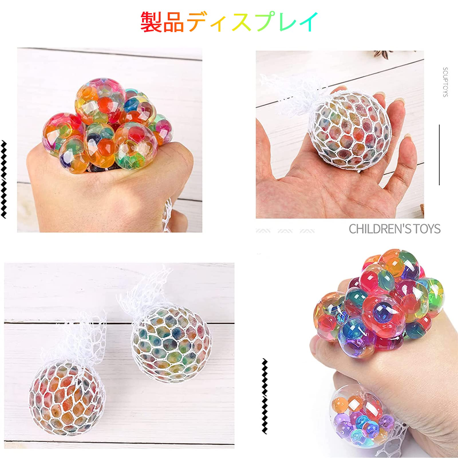 - 🎁.外観がカラフルで綺麗なスクイーズボール、手で握ると、中の小さなビーズが絞られて群がります、まるでグレープのように、金魚鉢、水培養植物、鉢植えの景品として、美しくて、面白かったです。リアルでかわいいのフルーツおもちゃはインテリアとして飾ってもイイ、ご家族や同僚へサプライズをプレゼントしたら、きっと笑顔と幸せな気持ちをもたらしてくれることでしょう。