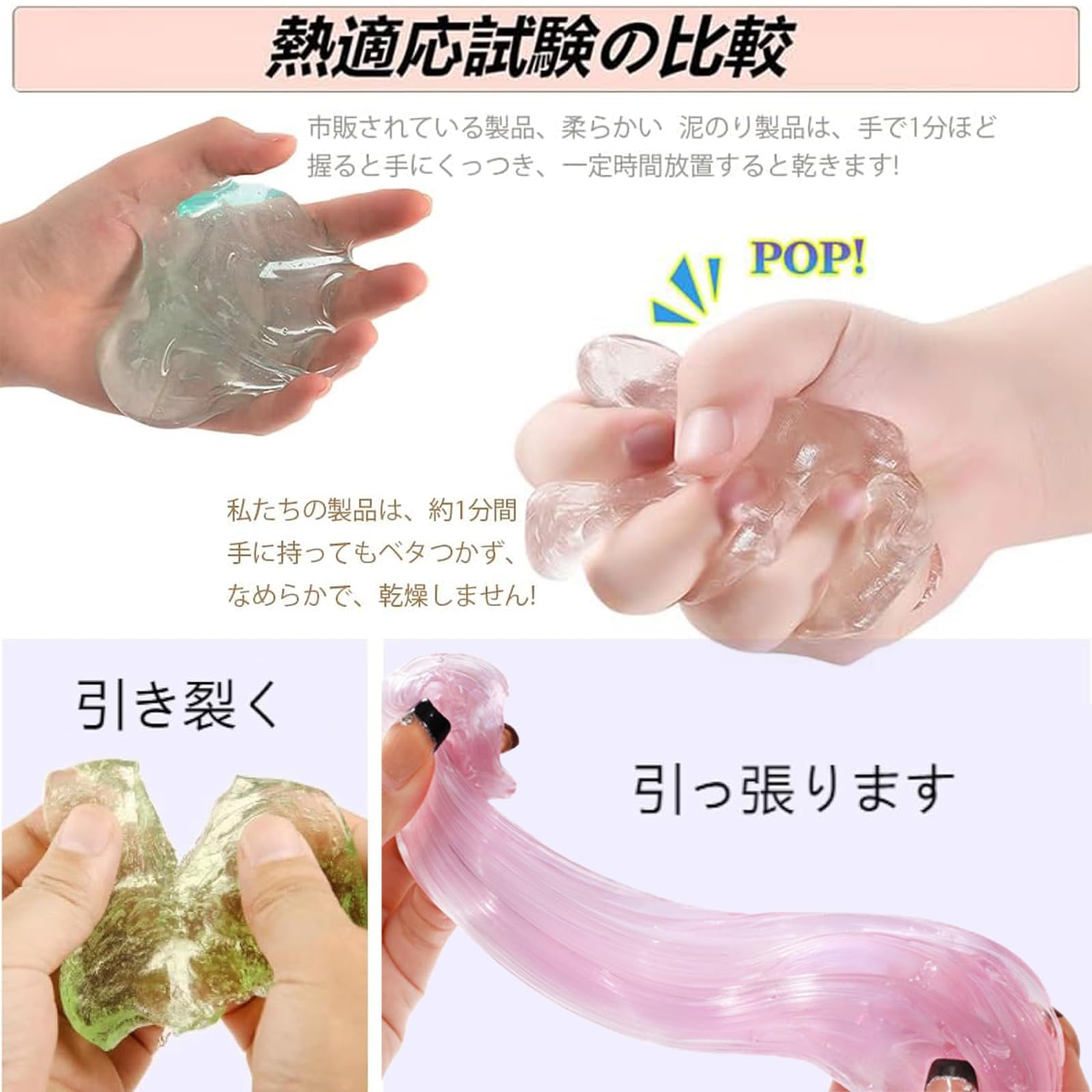 スライム ハンドガムクリア キット パテ 透明 くっつかない 固まらない お菓子のような クリスタルスライム ガムスライム オモチャ 面白い スクイーズ ストレス発散 玩具 おもちゃ アメリカ 男女兼用 手作り diy