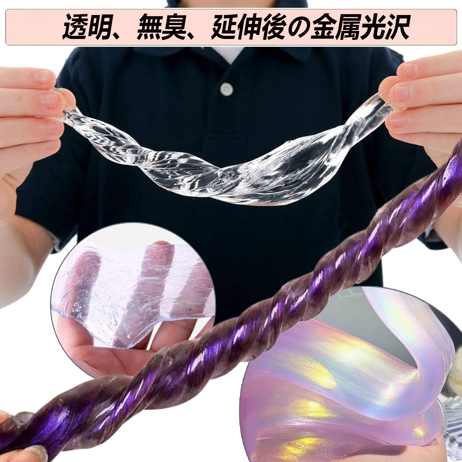 【高品質】透明なスライムフィジェットパテは、子供や大人用のパテとして十分に安全に使用できます。 このスライムおもちゃにはホウ砂は使用していません。 完全に非毒性で、教師や両親の間で人気があります:この商品は高品質な透明なスライムフィジェットパテです。子供や大人が安心して使用できるように設計されており、安全性に配慮しています。また、ホウ砂は使用していないため、完全に非毒性です。教師や両親の間で人気があります。
