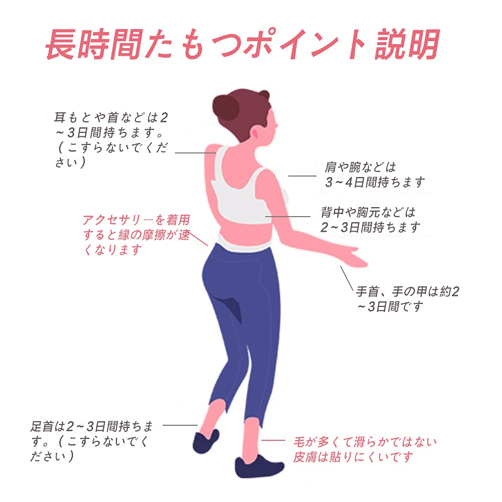 5.ハロウィン、音楽フェス、イベント、クラブ、お祭り、パーティー、海水浴 などの場所で使うのに適しています。お宅で怡然自楽も適当。腕、足、背中、 胸などの好きなところに貼ってください。しわの所、体毛 濃い所、よく動く ところには貼らないようにしてください。