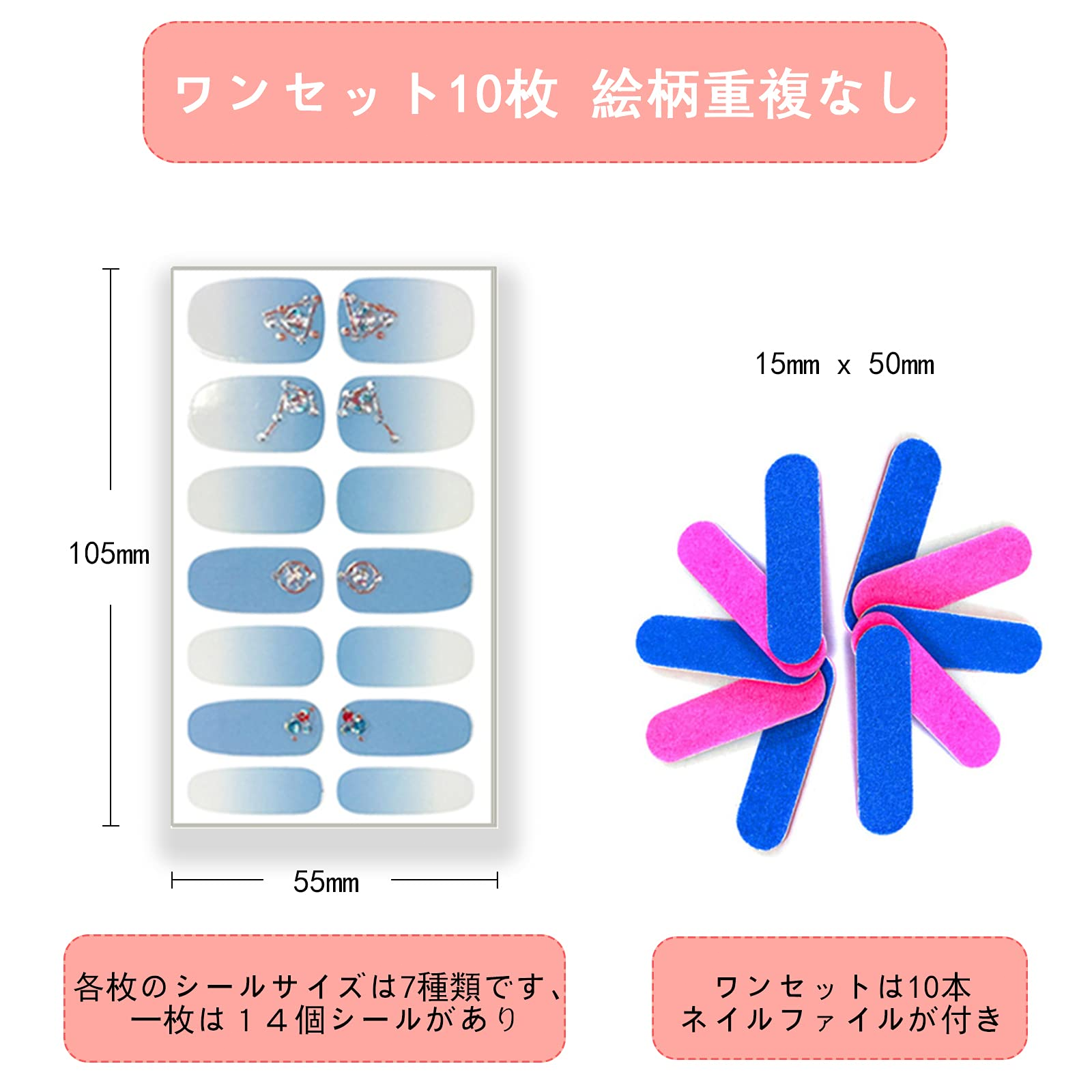 【豊かなデザイン】豊富なデザインで、デザイナーがファッションに合わせてデザインします、気分や、季節や服や場所によって自由にコーディネートしてます。各セットには10枚+10本ネイルファイルが含まれています。