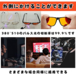 就寝前のデジタルデトックスサポート。夜間のPC作業やスマホ使用時に、380~510nmのブルーライトのカット率は99.9%になります。体内時計の乱れを防ぎ、自然な眠りへ導きます。