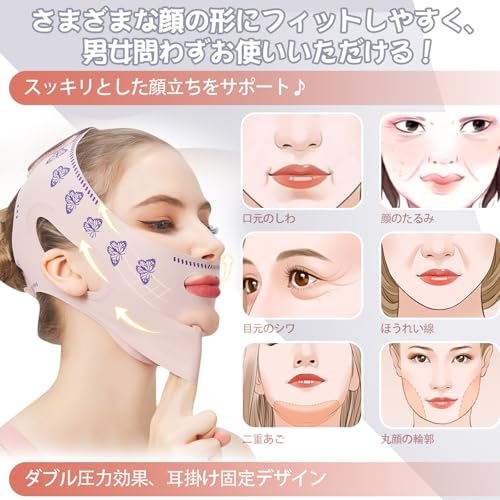 - ★【フェイスラインダブルストラップ構造】完璧なバランスの顔の大きさ、形、あごのライン、あごの形、なめらかさを目指すならフェイスベルトが最適です。シワができがちな肌を引き締め、二重あごを改善、若々しいフェイスラインを手に入れるのに役立つ美容グッズです。