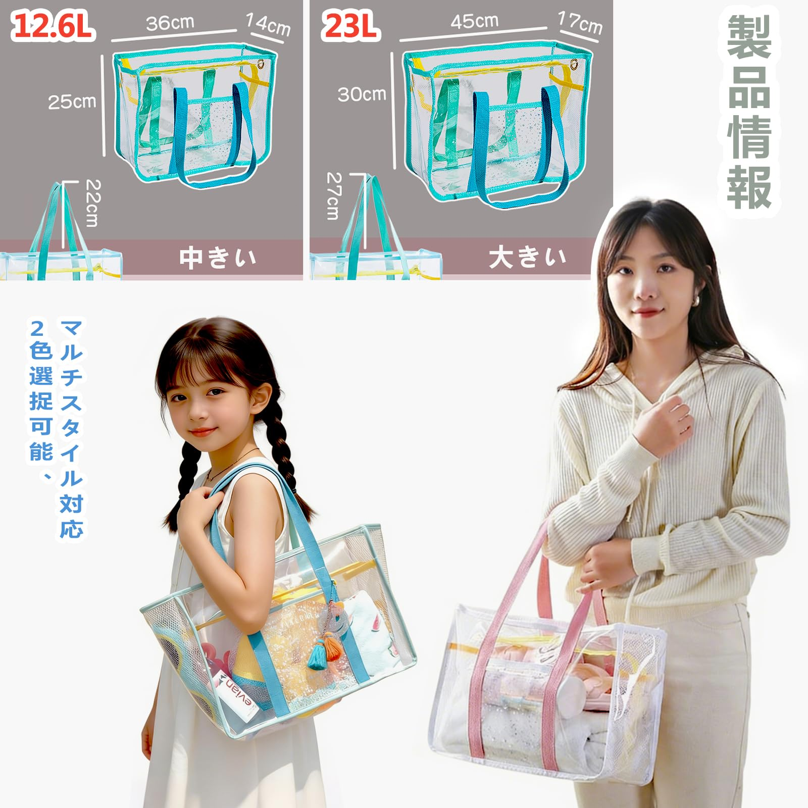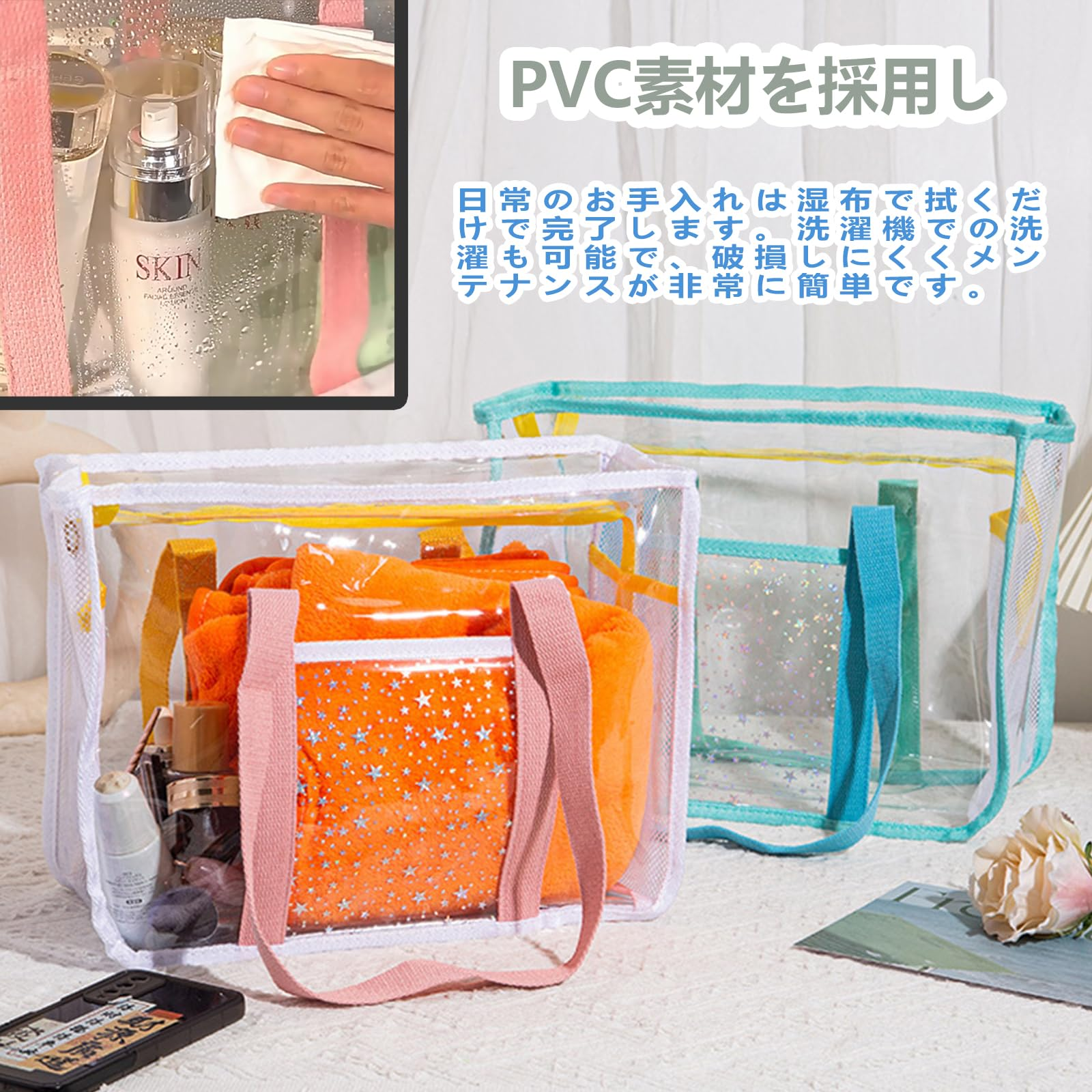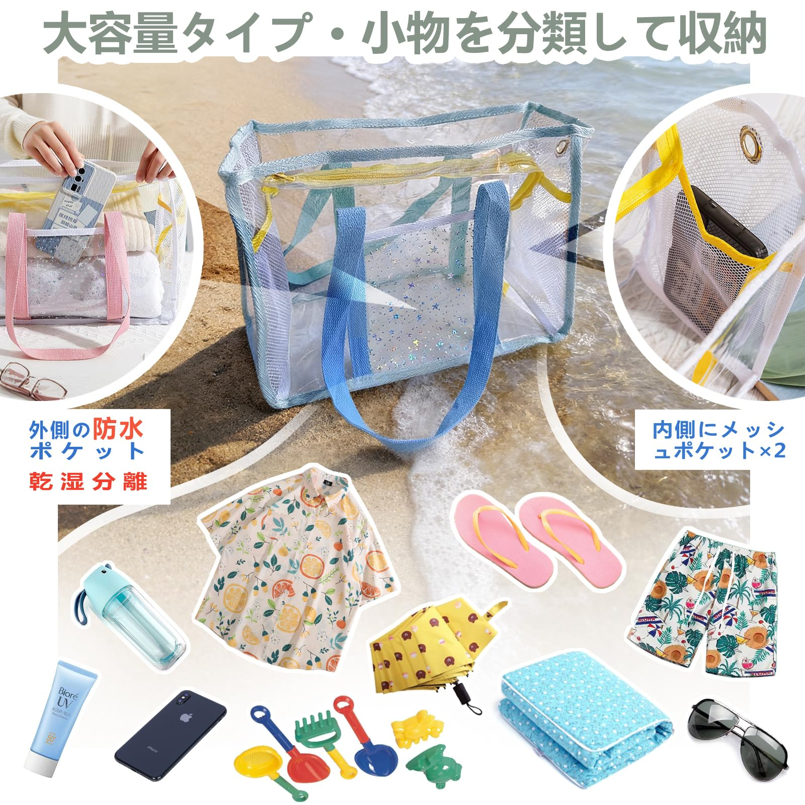 - ✅ 【水陸両用+衛生的設計】◆ PVC素材を採用し、海水・プールの水・雨に濡れても簡単に拭き取れます。◆ 湿ったタオルや水着を直接入れても漏れることなく、周囲の荷物を汚しません。📦 【コンパクトボディー+スマート収納】◆ 内部にメッシュポケット 2 つ、外側に防水ポケット 1 つを搭載。鍵、小銭入れ、サングラスなどの小物を分類収納できます。◆ 他のPVCバッグの半分の重さで、旅行や休暇に最適です。◆ 外側ポケットは両面PVC素材で、湿ったものと乾いたものを分けて収納できる「乾湿分離」機能を実現しました。◆ 透明素材なので、バッグの中身が一目でわかり、探す手間が省けます。