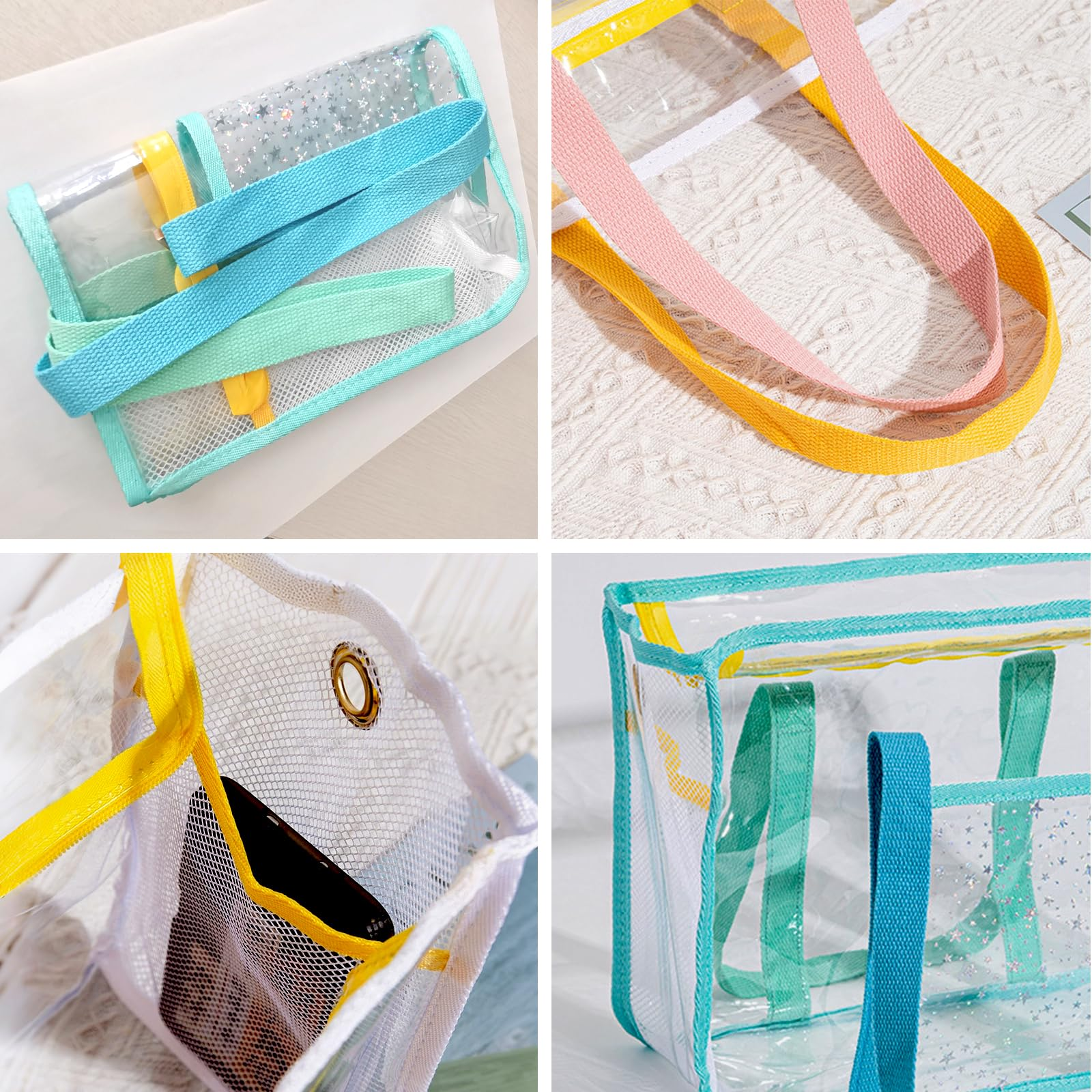 - 📦 【マルチスタイル対応】人気の2つのカラーバリエーションを展開:◆ クリアブルー×グリーンのグリッターデザインは清新で夢見がち、可愛らしい雰囲気を好む若い女性におすすめ。ピンク×ホワイトはシンプルで優しい雰囲気で、シャープなラインデザインは大人の女性の日常使いにもぴったりです。◆ 手提げとショルダーの2WAYスタイルで、日常の街歩きや短期旅行のコーディネートポイントにもなります。ハンドルは同色系またはコントラストカラーから選べ、◆ 幅4cmのナイロン素材は頑丈で破れにくく、長さも適切です。