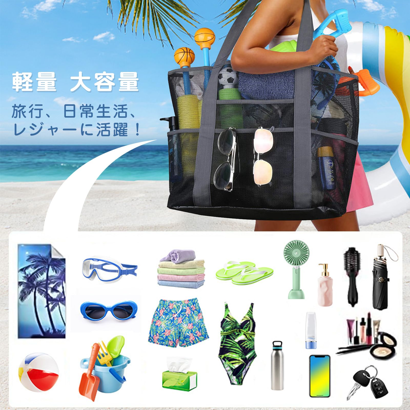 マルチシーン対応!軽量メッシュビーチバッグ ◆ 超大容量デザイン 海水浴・プールでのタオルや水着、スポーツジムの着替え、旅行の荷物整理まで、A4サイズも楽々収納。メッシュ素材で通気性抜群、水はけの良さが濡れ物保管に最適です。 ◆ 水陸両用機能 防水性ビニールコーティング加工で、海辺・温泉・サウナなどの湿気が多い環境でも安心。洗濯機丸洗い可能なため、衛生面でも優れています。 ◆ マルチスタイル対応 手提げ/ショルダー/リュックの3WAY仕様。保育園送迎からビジネス出張まで、男女問わず使えるシンプルなおしゃれデザインです。 ◆ ギフトに最適 韓国発の人気アイテムで、小学生から大人まで幅広い年代へ。 ※本品はアウトドア用品であり、特定の医療効果・品質保証を謳うものではありません。 ※色味はモニター環境により異なる場合がございます。