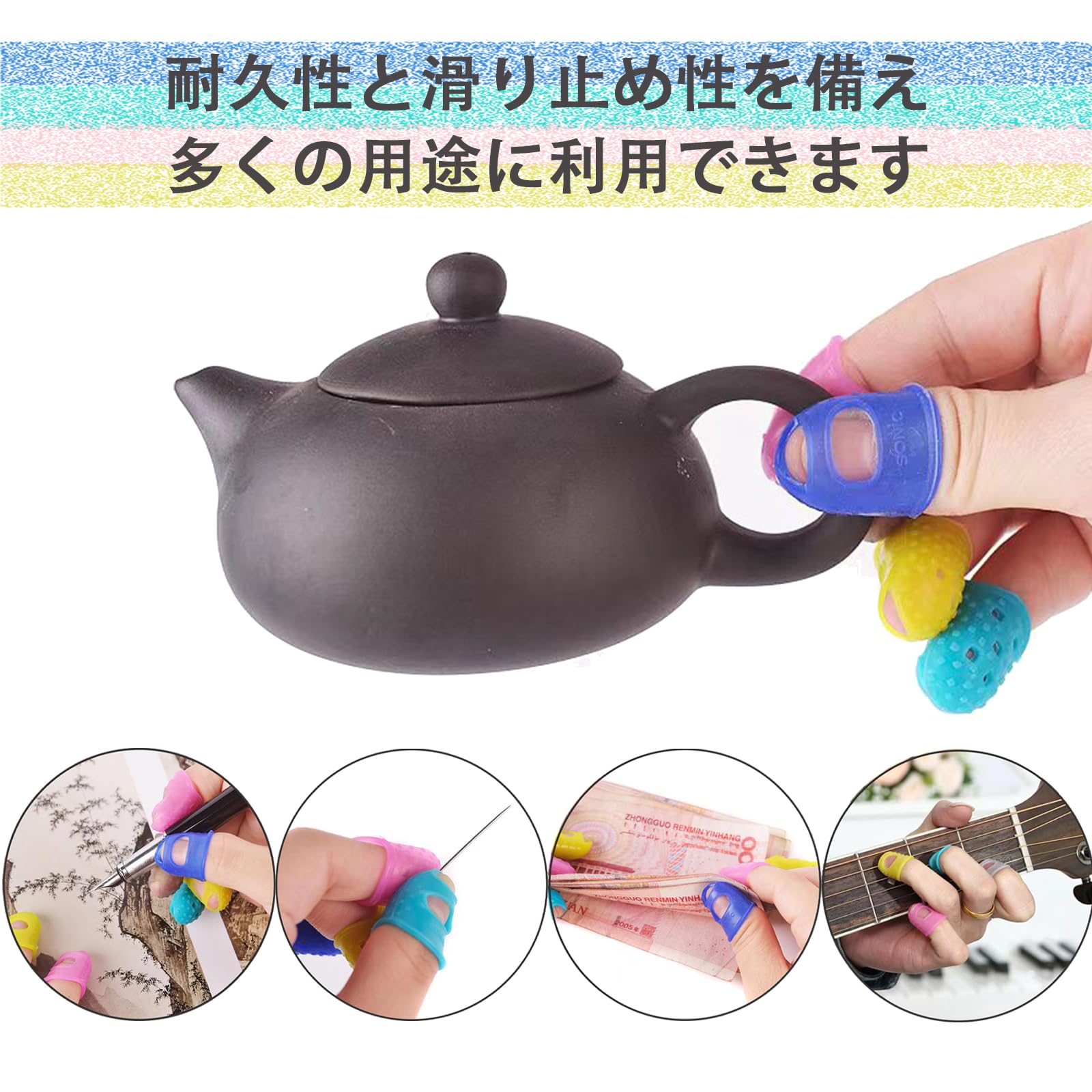 - ABSゴム樹脂で作られており、非常に強靭で弾力性があります;柔らかくて快適で、指にフィットするデザインは指先をよりよく包み、落ちにくく、使いやすいです。つけ心地がよく、つけている間に他の仕事をしても邪魔にならず、気にならず、仕事のストレスを減らしてくれます。