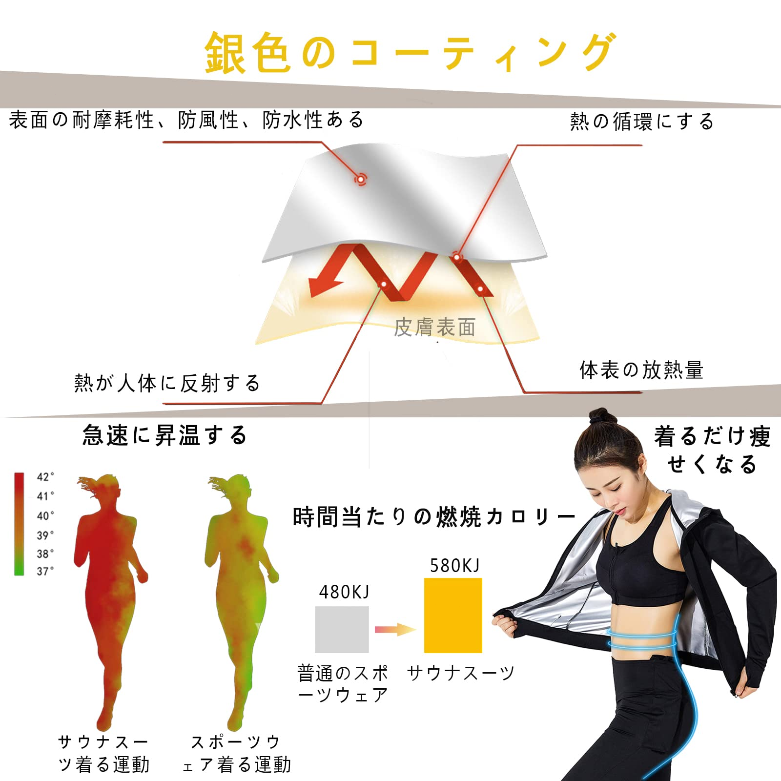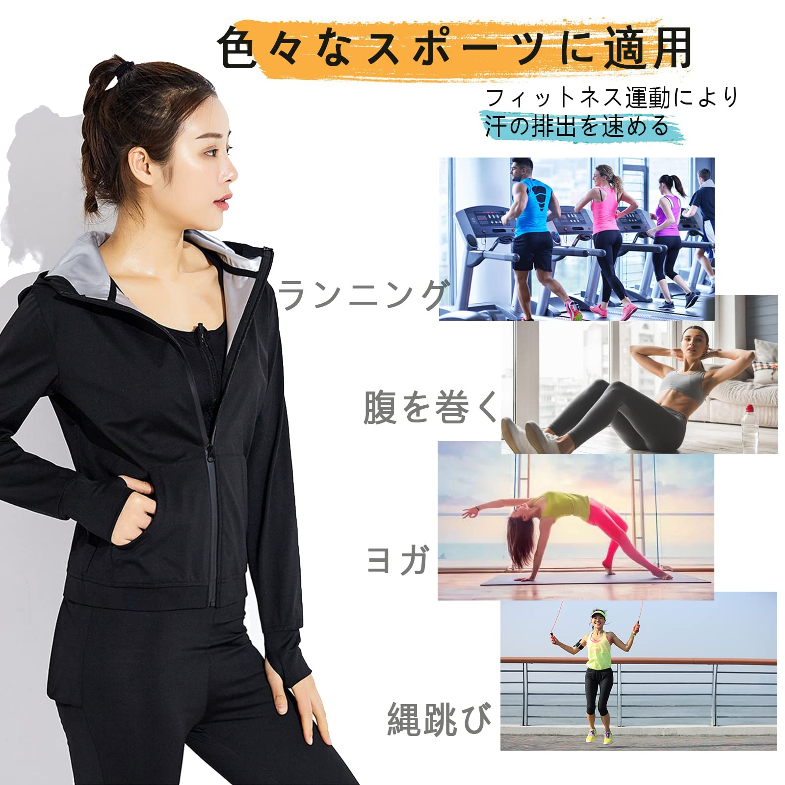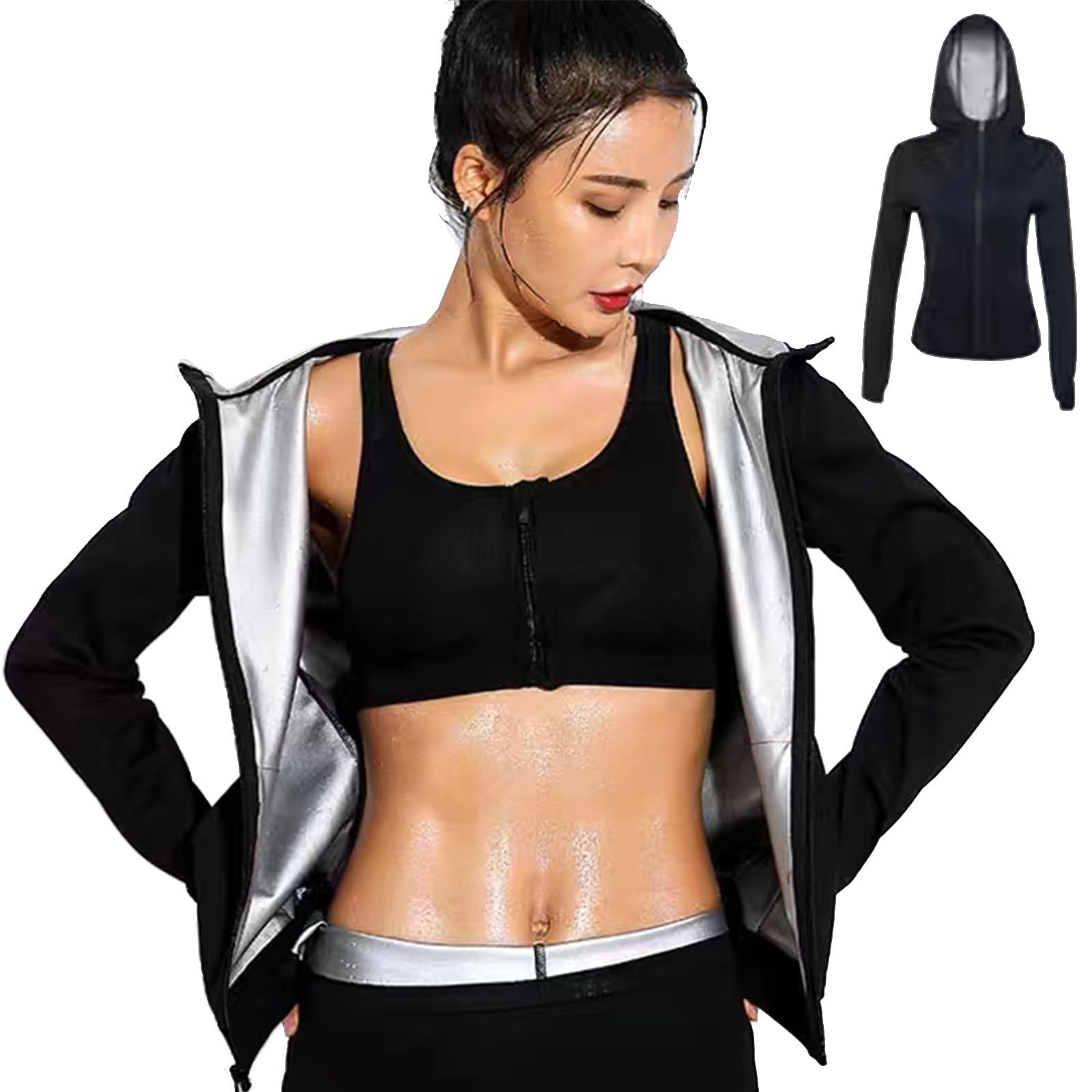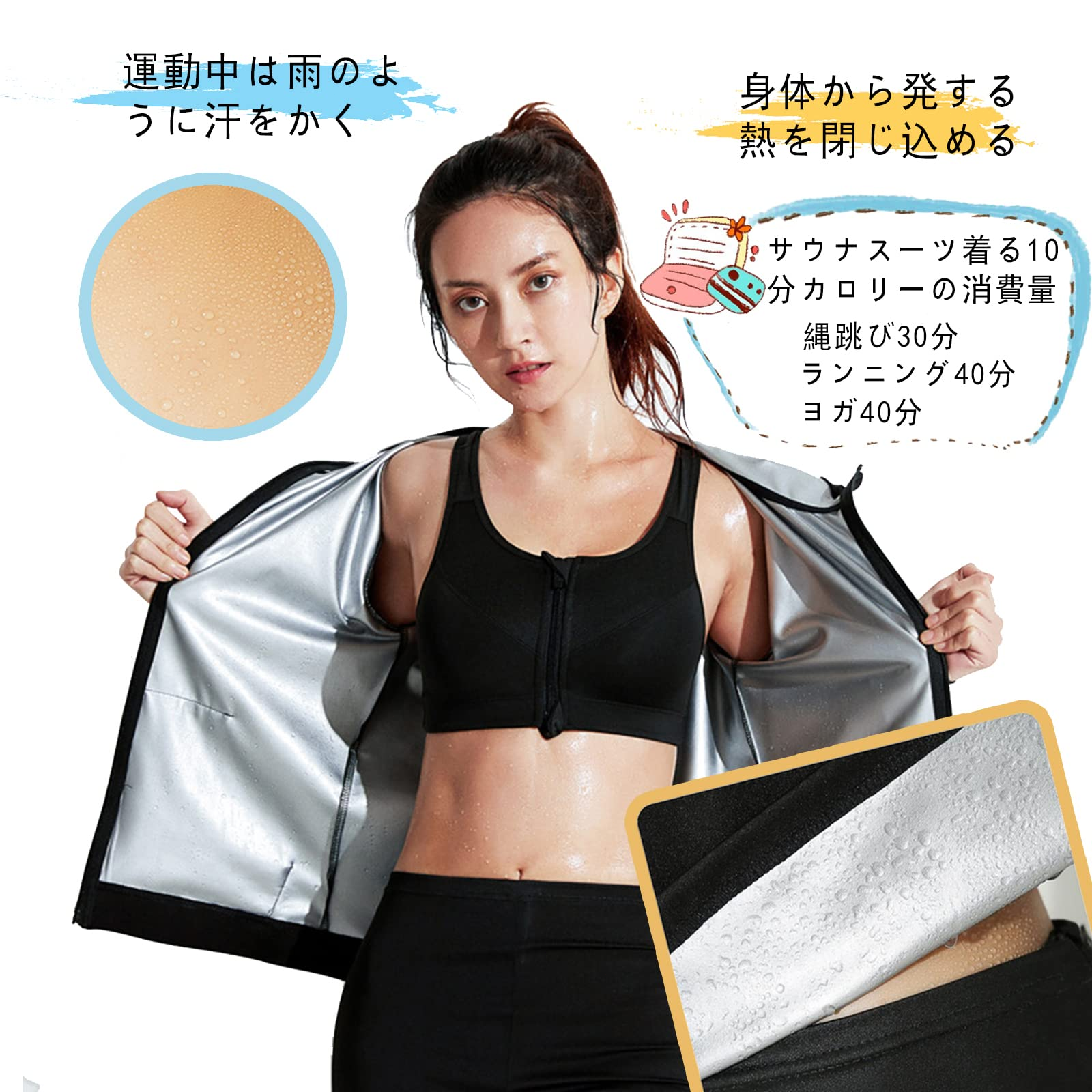 [Smato] サウナスーツ レディース パンツ 半袖 二の腕シェイパー ボディシェイパー 上着のみ 長袖 大きいサイズ 夏用 運動用 洗濯可 トレーニング 高発汗フィットネスウェア