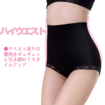 • ハイウエスト:ウエスト周りの贅肉をギュギュっと引き締めてスタイルアップ。