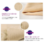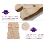 - 螺旋編み:太もも部分に大きく施した螺旋状編み仕樣で、程良い締め付け感を与えます。