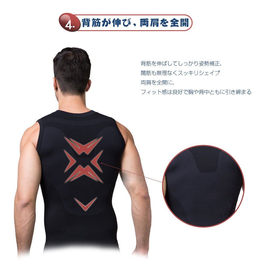 [Smato] タンクトップ メンズ ボディシェイパー 胸部圧縮 バインダー アンダーシャツ uネック ノースリーブ 薄型 ショルダーメッシュ素材 冷感 背筋 スッキリ 加圧インナー コンプレッション
