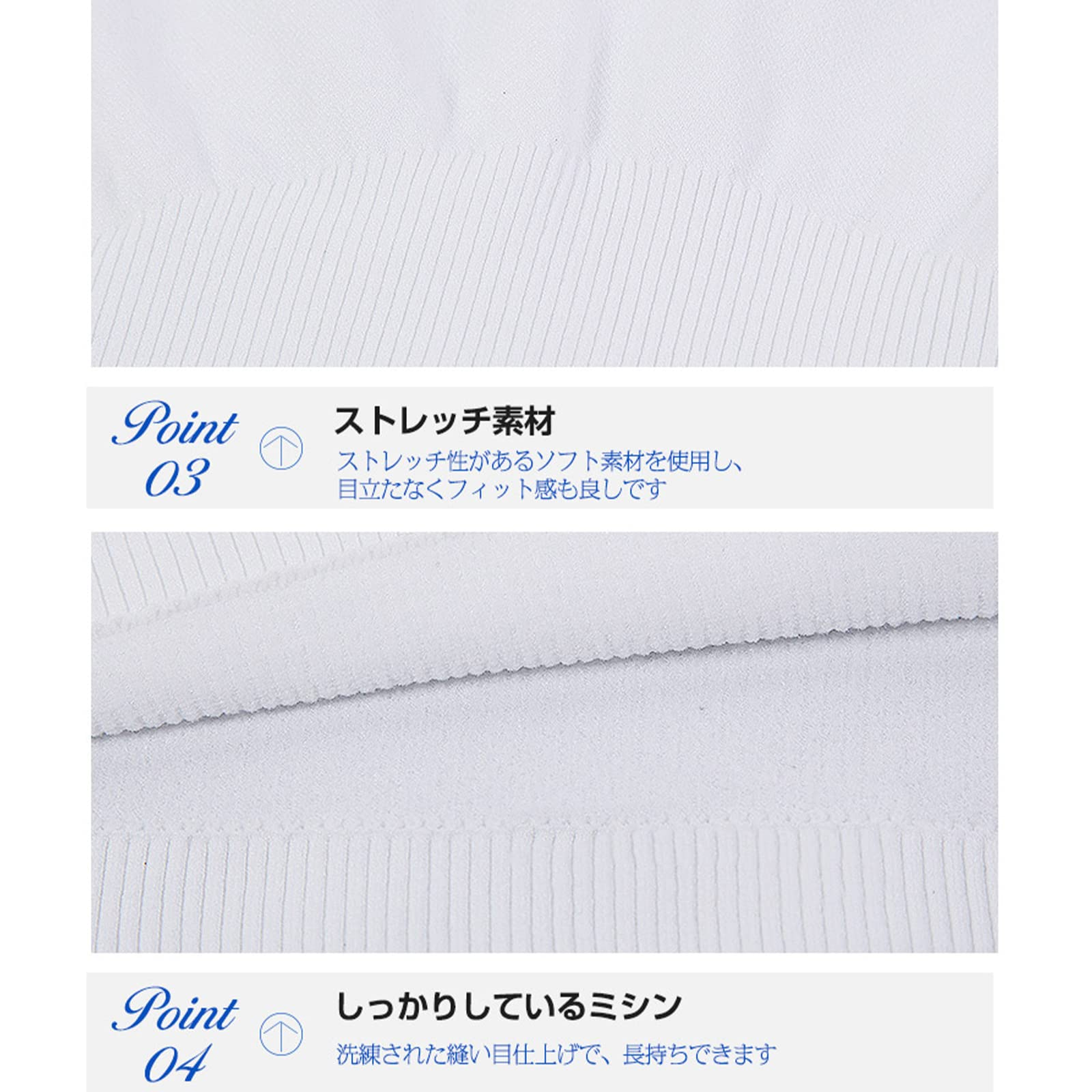 - 継ぎ目なく一体の技術:継ぎ目なく一体の設計で肌触りも良くなり、メンズのボディラインをスッキリ出せる!