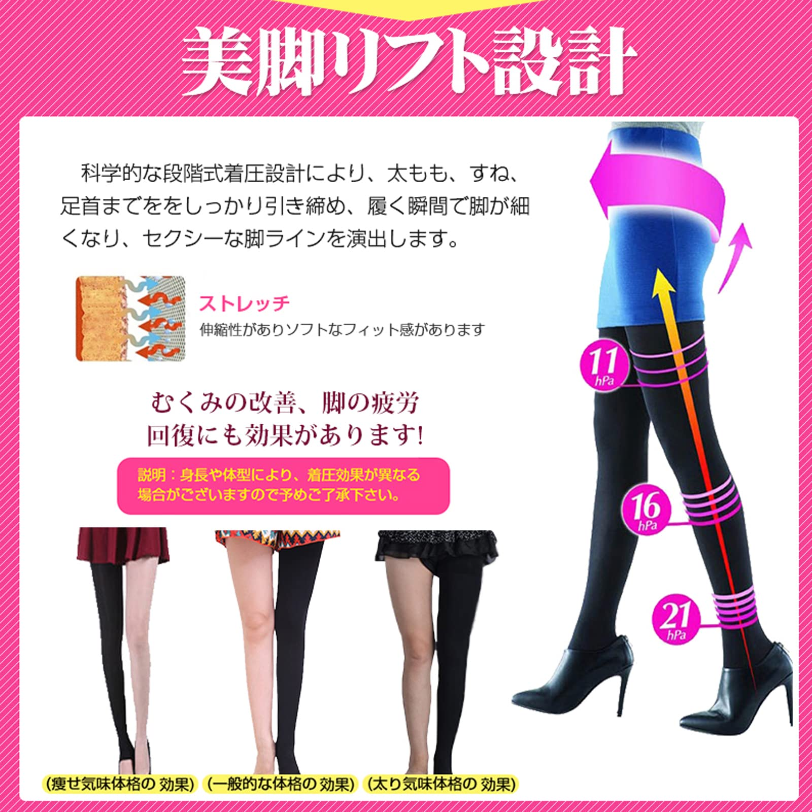 [Smato] レギンス レディース 着圧 スリムタイツ 骨盤 お腹 ふくらはぎ 引き締め むくみとり ソックス ナイトスパッツ レギンスパンツ