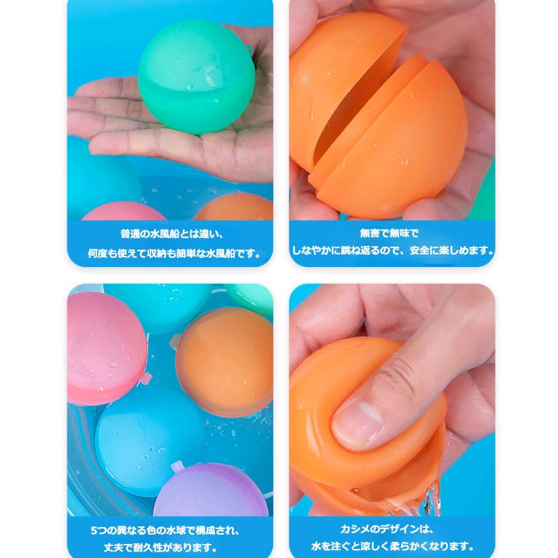 水風船 繰り返し使える 割れない シリコン 60mm 5個 水遊び プール お風呂 おもちゃ 何度も使える 再利用 スプラッシュ ウォーター ボール 玩具 グッズ 大量