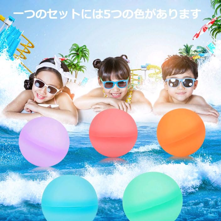 • 水風船 繰り返し使える 割れない シリコン 60mm 5個 水遊び プール お風呂 おもちゃ 何度も使える 再利用 スプラッシュ ウォーター ボール 玩具 グッズ 大量