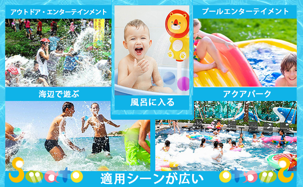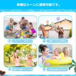 • 2、🎪【使用シーンと利便性】 ◆ 6cmのコンパクトサイズで超軽量、室内はもちろん屋外でも活躍します。プールサイド、庭、お風呂場、ビーチ、キャンプ、ピクニックなど、あらゆる場面で水遊びを楽しめます。暑い夏の日や家族のプールパーティーを盛り上げるだけでなく、お風呂の時間も楽しく変えてくれます。 ◆ 持ち運びやすく、旅行や外出先にも簡単に持っていけます。水を抜いて押しつぶせばコンパクトになるので、収納スペースをとりません。