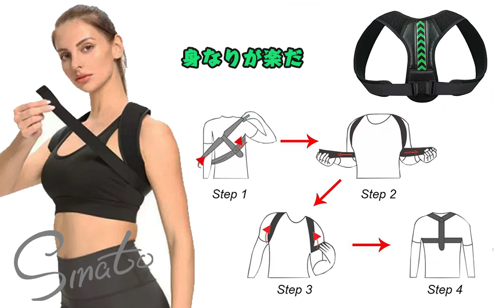 Smato 姿勢ベルト 猫背ベルト 改良型 姿勢 サポーター 大きいサイズ 背中とお腹周り ダブル補強 目立たない 自由調整 子供 男性用 女性用